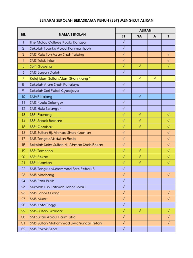 Senarai Sekolah Yang Menawarkan Kemasukan Tingkatan 6. Berikut merupakan senarai Sekolah Berasrama Penuh SBP yang terkini. Sekolah Aliran Agama Terbaik di Selangor - SwastaKerajaan Negeri Salam kekawan Selangor.