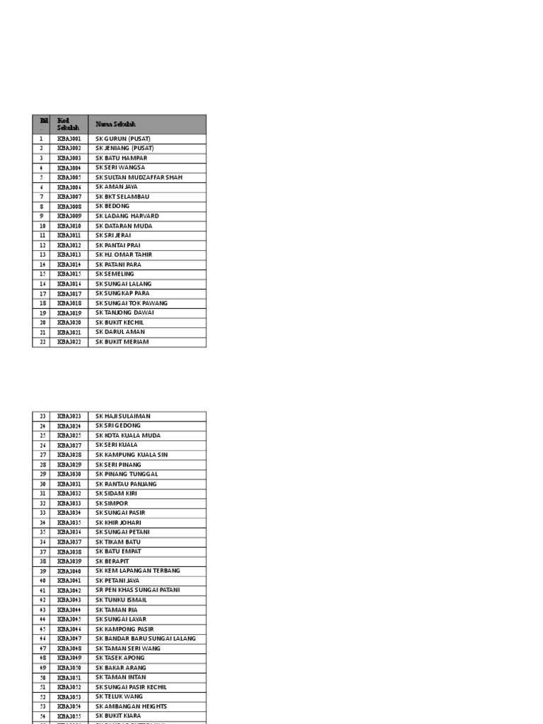 KBCA110moeedumy Kod Sekolah. SENARAI SEKOLAH MENENGAH DI KEDAH SEPERTI PADA 31 JANUARI 2011 Negeri KodSekolah NamaSekolah AlamatLokasiSekolah BandarLokasiSekolah PoskodLokasiSekolah Lokasi NoTelefon NoFax L P EnrolmenKEDAH KEA0035 SMK BALING JALAN KULIM BALING BALING 09100 Bandar 044701218 044702577 309 692. 044765377 Alamat Emel.