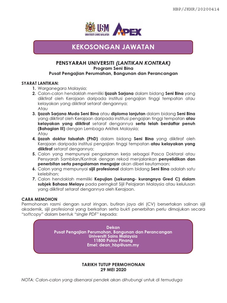 Hbp Jkhr 20200414 Iklan Senibina 2020 Lantikan Kontrak R1