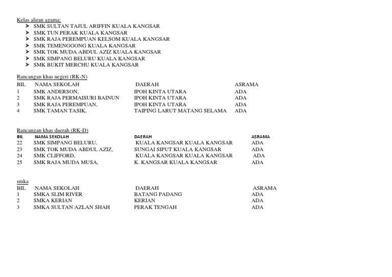 Faks e-mel no education district type of school school code. Kp tanpa - anda untuk membuat semakan. Berikut adalah senarai Sekolah Menengah Agama Negeri Perak untuk kemudahan para pemohon.